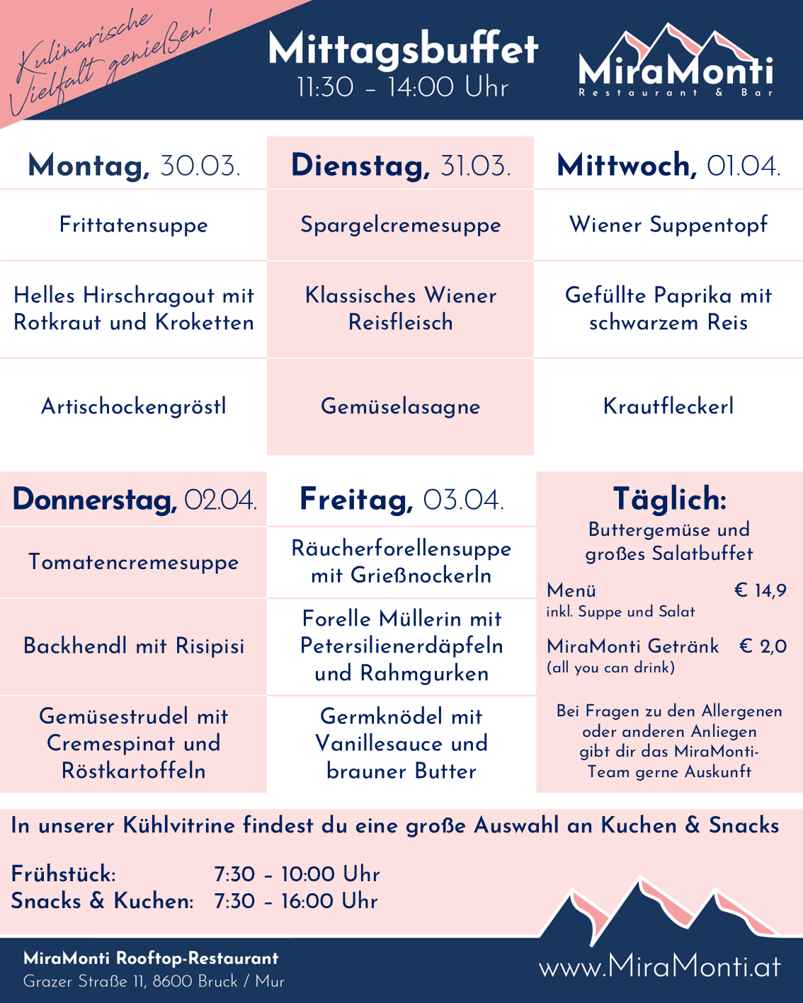 Montag bis Freitag von 11.30 bis 14.00