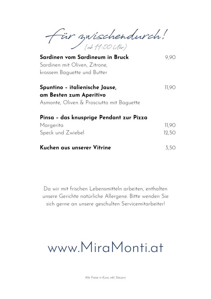 Montag bis Freitag 7.30 bis 10.00 Uhr – Reservierung erbeten!